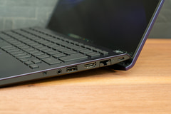 ほかの要素は前モデルをほぼ受け継いでいる。液晶ディスプレイは最大2,560×1,600ドットのタッチパネル(1,920×1,200ドットのタッチ非対応も選択可)で60Hz。Thunderbolt 4(USB4)ポートとUSB 3.2 Gen 1ポートは左右側面にバランスよく2基ずつ、計4基用意され、有線LAN(1GbE)、HDMI出力も備える。