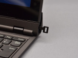 ヒンジの取り付け位置が、キーボードドックの最も後方ではなく、やや手前に用意されている点も、独特な構造といえる。液晶部着脱式のノートPCでは、どうしても液晶部が重くなってしまい、液晶を大きく開いて利用する場合などに、本体の安定性が損なわれてしまう。特にHelixのように、タッチ操作に対応している製品では、タッチ操作時に本体が後方に倒れてしまうこともある。しかしHelixでは、ヒンジの位置がやや手前にあることで、重心も手前に移動し、大きく液晶を開いた状態でタッチ操作を行っても安定して利用できる。さらに、この構造によって後方に用意されているポートが液晶部で隠れることもない。