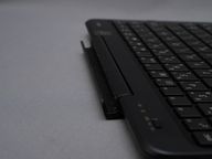 付属のキーボードは、上位のT300 ChiやT100 Chiのキーボード同様、Bluetooth接続となっている。タブレット本体を後方ヒンジ部の溝に挟み込むように取り付けることで、クラムシェルスタイルでの利用が可能となる。しかも、このヒンジは回転機構を備え、液晶部の開閉も可能となるため、装着時の利便性はクラムシェルノートそのものとなる。