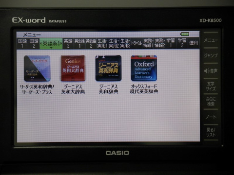 コンテンツ数は170で、従来モデルにあたるXD-U8600からさらに10コンテンツ増加している。中身を見ていくと、ジーニアス英和辞典(第4版)、英会話スキット・トレーニングのほか、これまでVol.2までしか収録されていなかったTOEICテスト新公式問題集がVol.4まで収録されているといった違いが目につく。