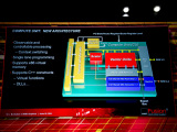 Graphics Core Nextの新アーキテクチャでは、FSAのサポートに必要となる、あるいは、FSA世代で望まれるさまざまな新機能を備える。例えば、細粒度のコンテクストスイッチングや、GPU内部の複数のコアで異なるカーネルプログラムを走らせる機能を備える。また、x86 CPUのバーチャルメモリアドレス空間をメモリコントローラがサポートする。それによって、望まれているC++のサポートを実現する。これは、Microsoftの発表したC++のデータ並列向け拡張「C++ AMP(Accelerated Massive Parallelism)」と呼応する。