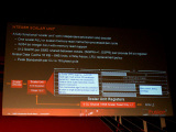 CUにはSIMD型のベクタ演算ユニットが4個とスカラ演算ユニットが1個備えられている。通常のGPUはベクタ演算ユニットしか持たないが、AMDの新アーキテクチャではスカラ演算のユニットを備える点が大きな特徴となっている。ベクタコンピューティングの先駆けとなったCray Researchのベクタスーパーコンピュータも同様にベクタとスカラの両方を備えていた。Demers氏もスピーチの中でCrayのアーキテクチャを引き合いに出した。