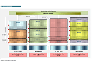 CUのSIMD演算ユニットは、それぞれが16レーンの演算ユニットを備える。浮動小数点(FP)の積和算と整数演算の両方を実行できる演算ユニットだ。また、それぞれが64KBのベクタレジスタを備えている。Crayスパコンのように、スカラ演算での性能も狙ったものではなく、コントロールフローなどの効率化を狙ったユニットだ。