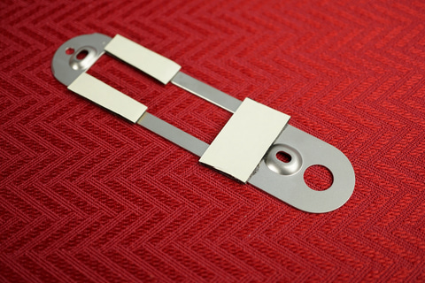 ただし、ベースプレートは、横から見たときに、ネジ穴部分が2mm程度出っ張っている。この両面テープの厚みは、この出っ張りより薄いので、両面テープを2枚重ねにすることにした。