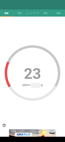 そこで、アイ・オー・データ機器のWi-Fi電波状況確認ツールである「Wi-Fiミレル」をスマホに入れて確認すると、玄関扉での電波強度はよくて20程度(最大100)と表示された。玄関の内側なら60程度あるので、金属製の玄関扉がそこそこ電波を遮断してしまっているようだ。