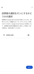 この後、「動画履歴をオンにするか」「マイクをオンにするか」「訪問客の通知をオンにするか」「音声言語」の設定がそれぞれ表示される。後でも変更できるが、音声言語は自分の言語にあわせて適宜変更し、それ以外はオンがオススメだ。