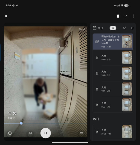 そして、荷物の検知についてもう1つ便利なのは、荷物がなくなったことも検知、通知できることだ。これについて筆者は今まで置き配荷物がなくなったことはないので心配していないし、こういう使い方ができることを知らなかったのだが、アメリカでは置き配荷物の盗難が社会問題になっていると聞いたことがある。そういった場合にNest Doorbellがあれば、検知が発動するとクラウドに動画が保存されるので、証拠を押さえることができる。