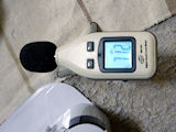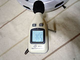 | 【写真05】COCOROBO稼動前の室内騒音は概ねこんなところ。ちなみに環境省による一般環境騒音の目安はこんな感じ | 【写真06】騒音計の至近にCOCOROBOがいた状態でピークがこの程度 |