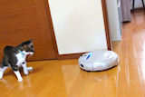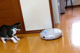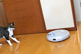 個人的にはルンバに始まるロボット掃除機がはやった理由は、猫との親和性ではないかという気もする。実際YouTubeで「ルンバ猫」と検索すると、そういう動画が山ほど出てくる。ウチではどうだったかというと、ごらんの始末(写真18)。少なくとも、乗っかろうというやつは1人も居なかった(笑)。