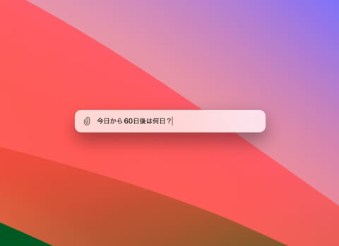 ランチャは、Macの使用中にふと気になったことを調べるのに便利です。たとえば「今日から60日後は何日?」と尋ねたり、「直径30cmをイメージできる例をいくつか挙げて」とリクエストしたりしてみましょう。