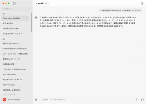 ただし、Mac版ChatGPTにはデスクトップ版アプリならではのいくつかのメリットがあります。