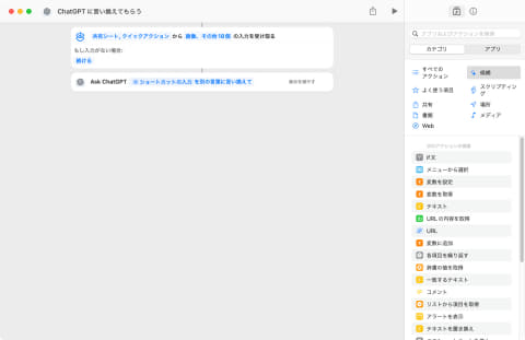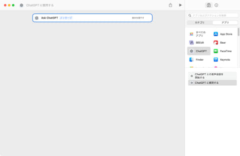 Mac版ChatGPTは、Mac標準の「ショートカット」アプリから利用できます。