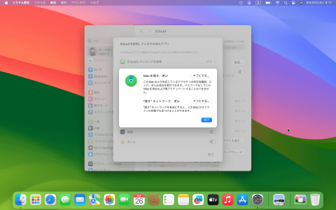 Macでは「システム設定」、iPhoneやiPadでは「設定」アプリを開き、自分の名前を選択してiCloudの設定から「(デバイス名)を探す」をオンにするだけで有効化できます。