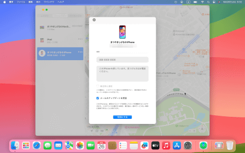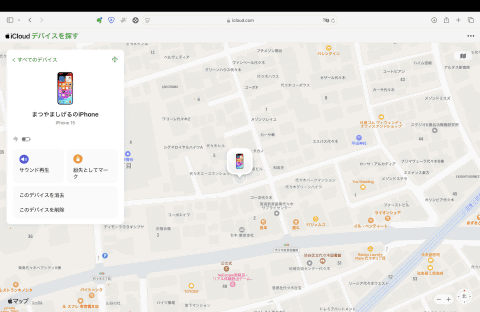 ここでデバイスが見つかった場合は、iPhoneの現在地が地図上に表示されます。