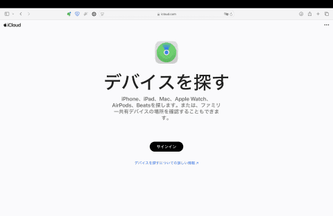 そんなときは、iCloud.comから「探す」アプリを利用しましょう。友人や家族のMacやWindows PCなどインターネットに接続できるデバイスがあれば、「iCloud.com/find」に自分のApple IDでサインインして「探す」アプリの「デバイスを探す」機能を利用可能です。