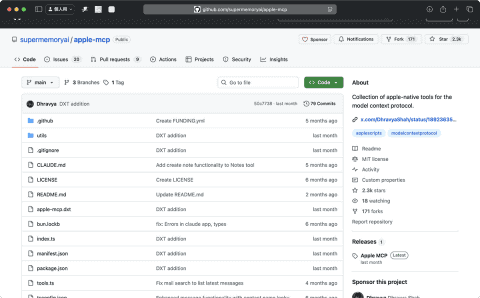 Anthropicが2024年11月に発表した「MCP(Model Context Protocol)」の仕組みを利用するこのツールを使えば、AIアシスタントの「Claude」や「Cursor」から、Mac標準アプリ(「カレンダー」「メール」「リマインダー」「メモ」「連絡先」「マップ」「Safari」など)を直接操作できるようになります。