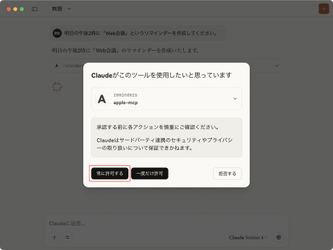 Apple MCPのインストールとClaude Desktopの設定が完了したら、実際に動作を確認してみましょう。