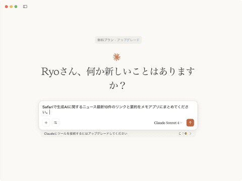 なお、Claudeには無料プランと有料プランがありますが、Apple MCPの基本的な機能を試すだけであれば無料プランでも利用可能です(ただし、1日あたりの利用回数には制限があります)。