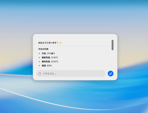 ただし、Apple Intelligenceに関するアクションは英語で出力される設定になっているため、プロンプトに「Output in Japanese(日本語で出力)」といった指示を加えることで日本語での出力を得られます。