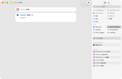 Tahoeの「ショートカット」アプリではもう1つの重要なアップデートとして、Apple Intelligenceのアクションが追加されました。