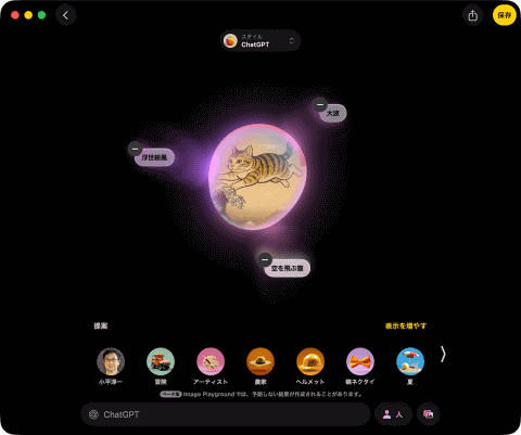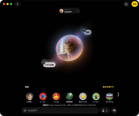 ジェン文字に加え、Tahoeでは「Image Playground」アプリがさらに進化を遂げたのも見逃せないポイントです。
