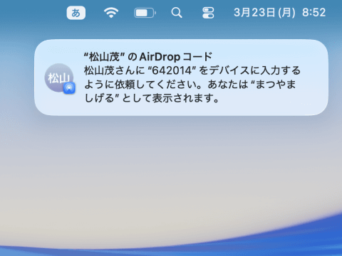 ちなみに、AirDropコードの認証は、デバイス単位で行なわれるという点も押さえておきましょう。