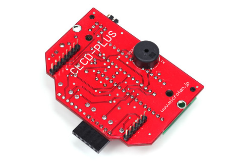 | CLCD-PLUSの基板裏面には圧電サウンダが実装されています。今回はここからBEEP音も鳴らしてみましょう |