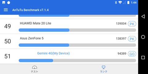 ベンチマークテストは簡易式だが「Google Octane 2.0」と「AnTuTu Benchmark」を使用した。Google Octane 2.0は9,653、AnTuTu Benchmarkは94,389。Google Octaneは筆者が合格ラインとしている1万に近くまずまず。ただAnTuTu BenchmarkはASUS ZenFone 5(138,397@Snapdragon 636)よりかなり低いスコアとなっている。