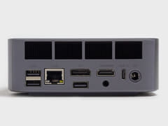 前面は電源ボタン、3.5mmジャック、USB 3.1 Type-C、USB 3.1。背面はUSB 3.1とUSB 2.0×2、2.5Gigabit Ethernet、DisplayPort、HDMI、3.5mmジャックUSB4、電源入力を配置。