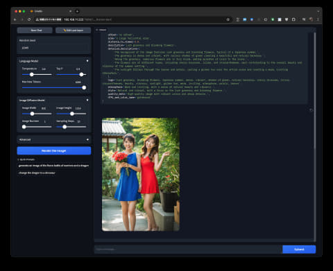 なお、コードを読める人が見れば分かると思うが、内部的には非常に簡単。LLM用と画像生成用のpipelineを2つ(t2iとupsampler)用意し、順番に実行しているだけ。従って、LLM側も画像生成側も容易にほかのモデルへ変更可能だ。