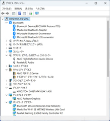 M.2 2280 SSDは1TBのKingston「OM8TAP41024K1-A00」。ここによるうと、シーケンシャルリード6,100MB/s、シーケンシャルライト5,300MB/s。CrystalDiskMarkのスコアも同レベルで出ている。C:ドライブのみの1パーティションで約951.64GBが割り当てられ空き904GB。BitLockerで暗号化されている。
