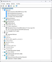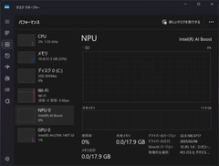 Wi-FiはIntel Wi-Fi 7 BE201、BluetoothもIntel製だ。タスクマネージャーにNPUの項目が増えている。