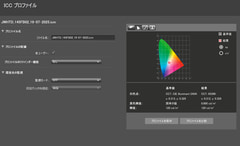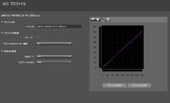 「i1 Display Pro」を使い特性を測ったところ、最大輝度335cd/平方m。写真の鑑賞/編集で最適とされる標準の明るさ120cd/平方mは、輝度-3ステップで149cd/平方m、-4ステップで108cd/平方mだったので前者で測定した。黒色輝度は0.000cd/平方mで、ここはさすがOLED。リニアリティも悪くない。