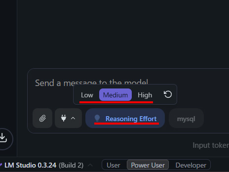 gpt-oss-20bと120bは、OpenAI純正外にもいろいろなパターンが出ているものの、今回は純正を使用する。これには理由があり、LM StudioだとHarmonyと呼ばれるフレームワークに対応し、「Reasoning Effort(考え中……)」をLow/Medium/Highに切り替えることができるからだ。以降の内容に関しては、特に断りがない限りMediumで試用した。