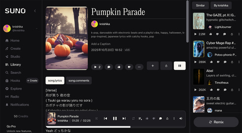 MVを作るなら楽曲がないと話にならない。これに関しては定番のSUNOを使った。与えたプロンプトは、
