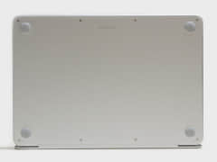 写真からは分からないが、パネル中央上にFaceTime HDカメラ。フチはそこそこある。左側面は奥側がUSB 3.2 Gen 2 Type-C、手前側がUSB 2.0 Type-C、手前に3.5mmジャックとLスピーカー。右側面はRスピーカーのみを配置。裏は四隅にゴム足、トップカバーはいつも通り中央に同社のロゴ。付属品はUSB Type-C(1.5m)ケーブルとACアダプタ(20W)。