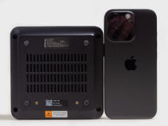 筐体はよくあるタイプのミニPC。iPhone 16 Proの比較からも分かるように、大き過ぎず小さ過ぎず。重量も実測で461gなのでカバンに入れて持ち運びも可能だ。