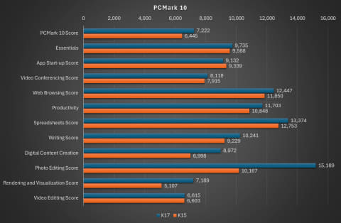 パフォーマンスは同クラスのCore Ultra 5 125U搭載K15よりも高く、なかなかなのだが、最大の問題はメモリがプロセッサ内包16GBから増設できないこと。この点だけ譲れるであれば、お勧めの1台と言えよう。