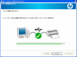 | 付属のCD-ROMからセットアップ。今回はUSB接続でのセットアップとした | USB接続。「HP Officejet 6000」を見つけると必要なドライバが組み込まれる | 再起動後。一通り終わった後、リブートして作業完了となる |