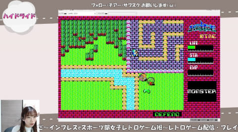 さらに、「アクションRPGでは大事なのでは?」と個人的に思っていたBGMが流れてこない!? 一応設定では音が鳴るようにしていたつもりですが、結局、効果音はあるけど、BGMはないことが判明。昔のゲームってこうだったんですね。ちょっと寂しいので、配信中はフリー素材のBGMを流すことにしました(笑)。