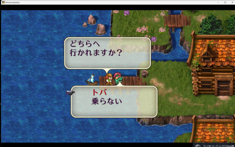 まずは「トバ」という町。前回は住民の話を聞いたり、町の中を歩いたりしてで終わっていました。ここはたくさんの橋がかかっていて、船でほかの町に向かうことができます。ちょっくら船に乗ってみようかなということで、「マーメイド」の町に船で向かってみました。マーメイドは小さい町で前回下見済み。なのですぐトバに戻ります(笑)。