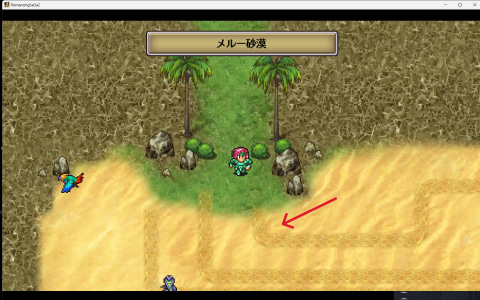 気を取り直して魔女のほこらで言われた「メルー砂漠」へ。ここには勝手に前に進む道があります。ナゼール海峡と同じく、途中で敵と遭遇すると戦闘が始まってしまいますが、ダーッと荒む感じが見ていて爽快(笑)。