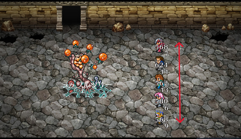 ようやく辿り着いた奥には、ある人を守るような形で敵が待ち構えていまました。「ラッフルツリー」です。久しぶりにかなーり強い敵。ヒントには、道中の敵の強さはあまり変わらないと書いてありましたが、全然そんなことありません(笑)。戦闘体制を変えてみたり、アイテムもフルに使ってみましたが、全く倒せる見込みなし……。