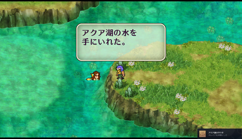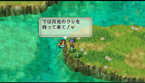 光をゲットしたのでモール族のもとに戻ると、やっと月光のクシを作ってくれました!これを持って人魚に会いに行き、引き換えに「アクア湖の水」をもらいます。アクア湖の水も人魚薬を作るために必要なんだそうです。