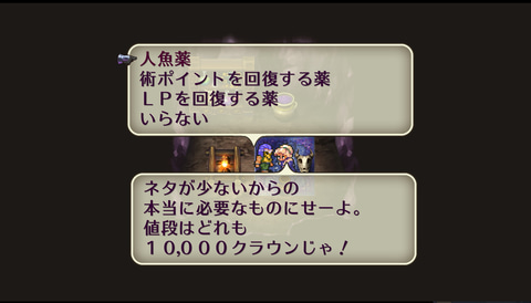 今度こそ、「トバ」で知らない間に取っていた「海ツバメの巣」、そして卵のから、アクア湖の水、必要なお金もそろえて魔女のほこらに行くと、人魚薬を作ってもらえました!