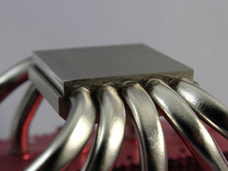 | フィンブロックの側面。中心部にヒートパイプが配置されており、両側からフィンで挟み込まれている。 |
