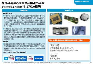 TSMCの日本進出で見逃せないのが、量産工場の建設と操業開始に必要な投資(設備投資)の半分(上限)を日本政府が補助するという事実だ。このための関係法制案は2021年12月20日に国会を通過し、最大で6,170億円の補助金を投じることが決定した。