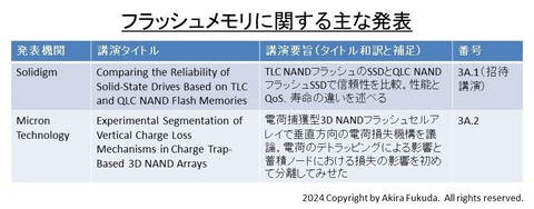 始めは半導体メモリに関する主な発表を順番に説明する。最初は「フラッシュメモリ」である。