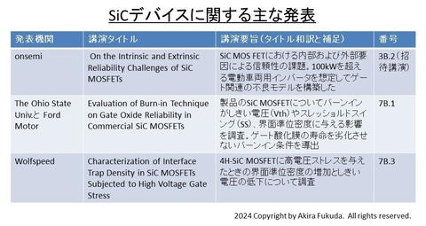 続いてパワーデバイス関連の注目講演を紹介したい。始めは「SiCデバイス」である。onsemiは、SiC MOS FETにおける内部要因および外部要因による信頼性の課題を解説する(招待講演、番号3B.2)。100kWを超える電動車両用インバータを想定してゲート関連の不良モデルを構築した。