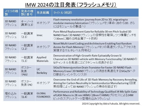 「フラッシュメモリ」の注目すべき発表は、当然ながらほとんどが3D NANDフラッシュメモリに関する研究開発成果である。